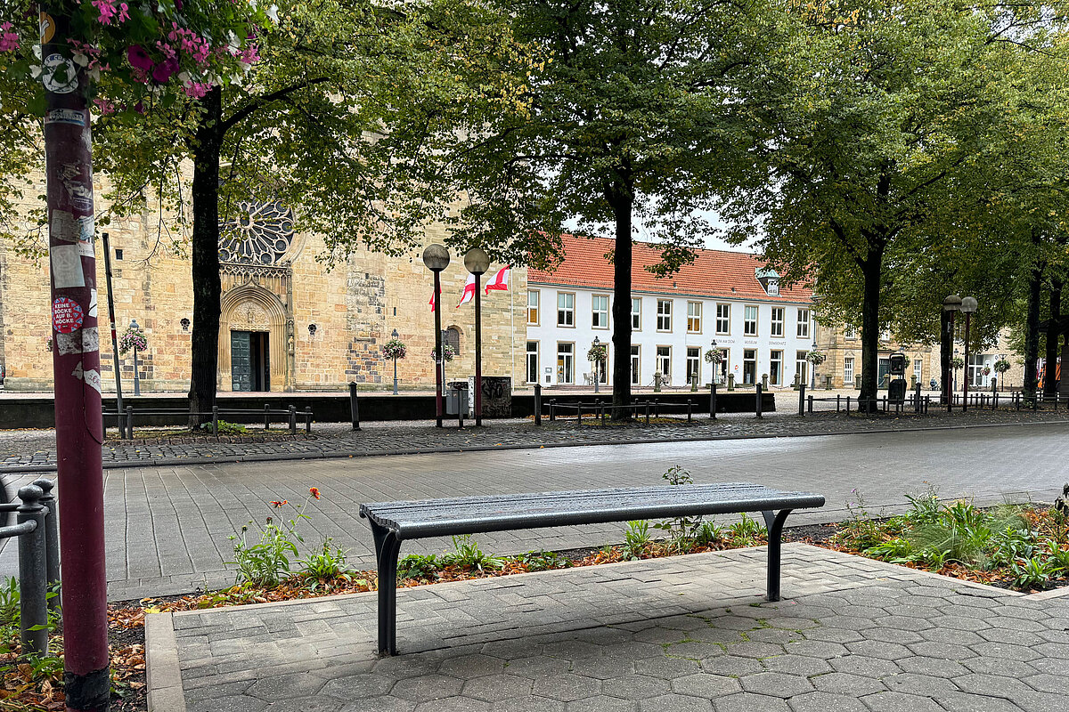 In Osnabrück gegenüber vom Dom laden unsere Sitzbänke Taragona sowie auch die Sitzhocker Taragona zum Verweilen ein. Die robuste und auch formschöne Bank passt sich perfekt dem Gesamtbild der Umgebung an.
